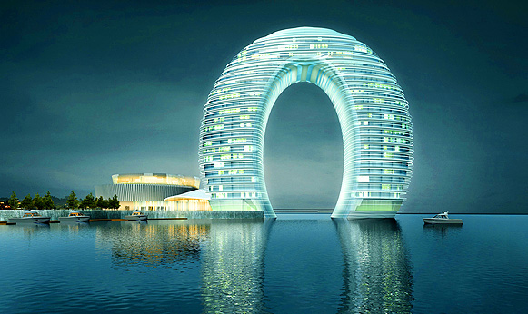 造型大胆独特,具有很强的视觉冲击力,太棒了。沈阳为什么没有这样的设计呢,沈阳为什么每个设计都那么传统,无法突破呢?原因很简单,需要自上而下的审美和品牌文化修养的提高,今天看到这个设计,我才知道湖州这个地方,才认真的去了解这个城市,他绝对是湖州的一张漂亮的名片,也是湖州漂亮的标志设计,太湖明珠,全称是“中国湖州喜来登温泉度假酒店”,由上海飞洲集团投资修建。这座国内首家水上白 金七星级酒店,位于似海非海的太湖南岸,是中国湖州“世界第九湾”的标志性建筑。其耳目一新的指环型形状,可谓国际首创、中国唯一。2010年2月经国家知识产权局的批准,该酒店获外观设计国家专利证书。看到这些我感到沈阳的差距,文化的差距,作为一家专业的品牌设计公司,我们服务过众多客户,不单有沈阳本土的,还有国内外的其他客户,每一次与客户的沟通都能感受到地域文化和素质的差距,经济越发达的地区相对文化就比较进步,沟通越顺畅,例如这次与日本鹿岛公司的沟通,虽然对方与我们沟通的三个高管都是日本人,也不会汉语,通过翻译我们也能很顺畅的沟通,因为他们真正尊重我们的专业,理解我们的专业,这是我们值得学习的,是我们沈阳客户应该学习的,提高自身的审美和品牌文化修养。