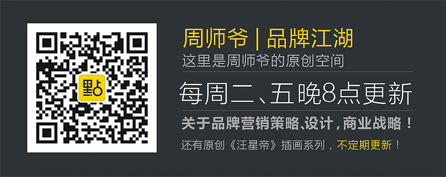 2017年给自己做了小计划,制定了一个小目标,在“点精”的公众号里开一个专栏,“周师爷”专栏每周至少一篇原创文章关于品牌,策略,营销,设计……等相关文章与大家分享,至少一个原创插画故事与大家共同开心一下!……