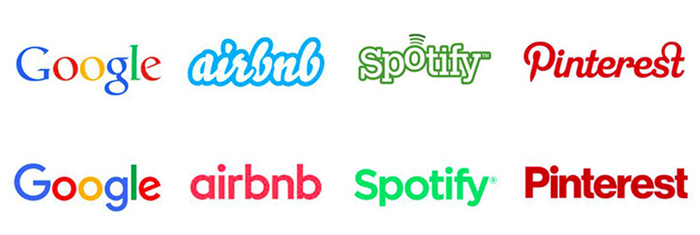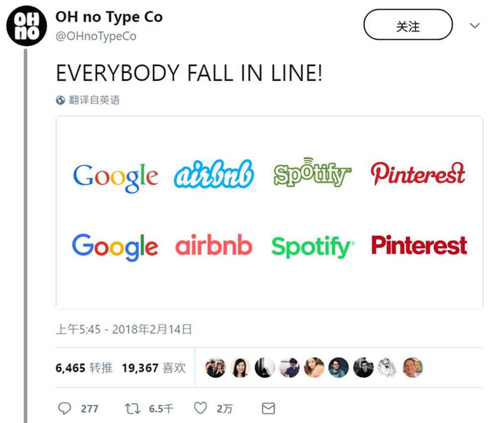 从上图看来,无论是“o”上带着电波小曲线的 Spotify,还是首字母长得像图钉一般的 Pinterest,最后都抛开这些小细节,跟着大队,为自己的 logo 换上了相似的中性无衬线字体。