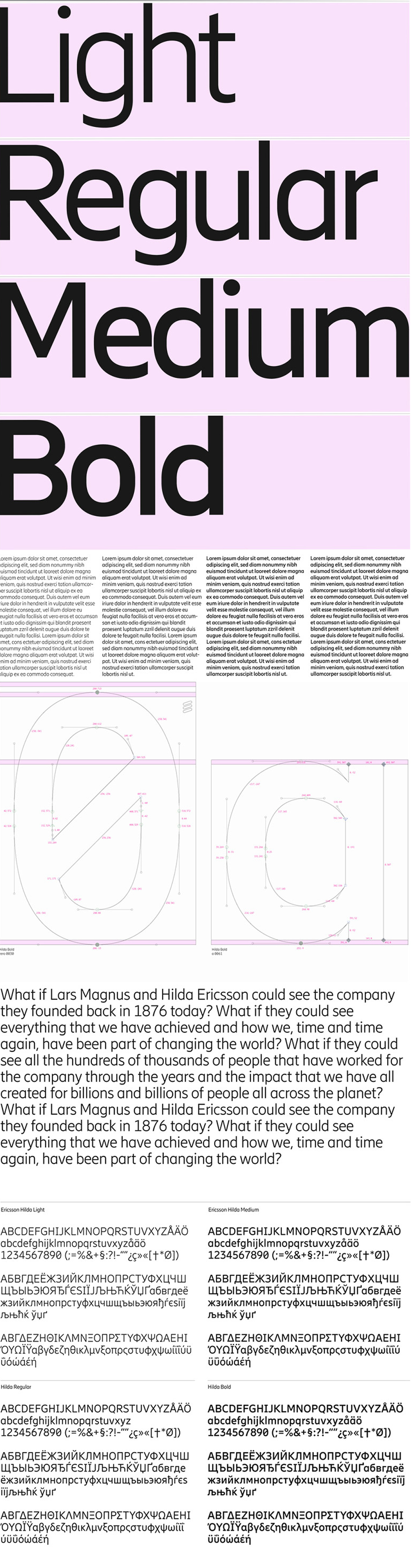 除了品牌形象的升级,此次爱立信还引入了全新的品牌字体“Hilda”,这款字体是专门为了用户体验而设计的现代字体,并专门针对爱立信的GUI环境进行优化,使其能够展现的更加清晰锐利。文末可下载这款全新字体。