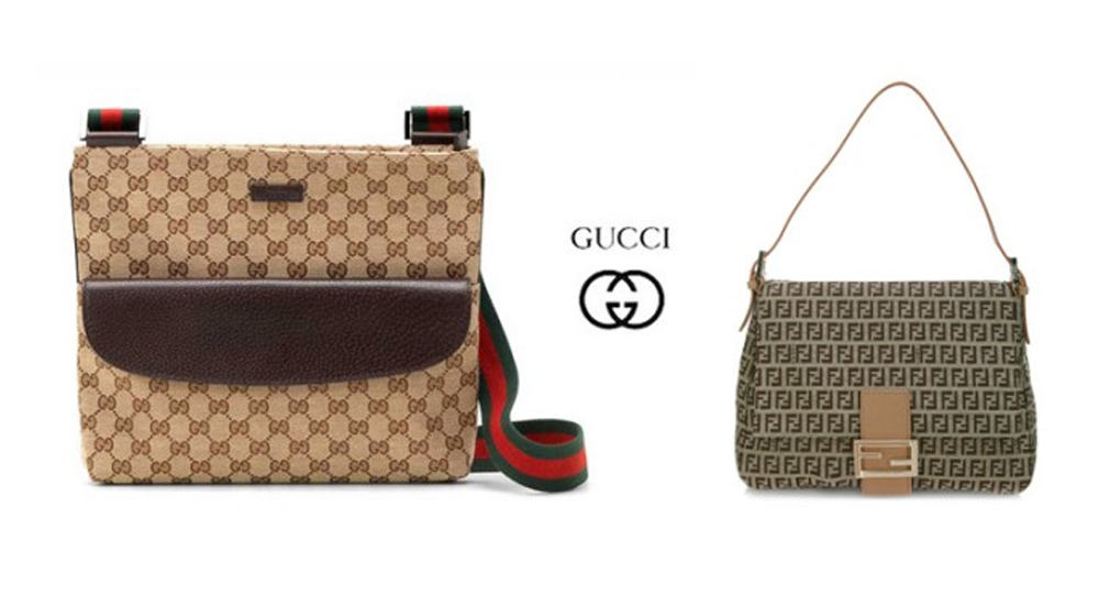 (2)将品牌标志组合成图案 采用标志重复排列组合的方式,使标志图案退化为一种具有装饰意义的“背景”,同时也强化了标志的认知。LV,GUCCI,FENDI等奢侈品牌利用“标志”崇拜心理,将品牌标志图形直接连续反复组合为有节奏和韵律的图案作为产品的外观装饰,兼具美感和品牌效应。