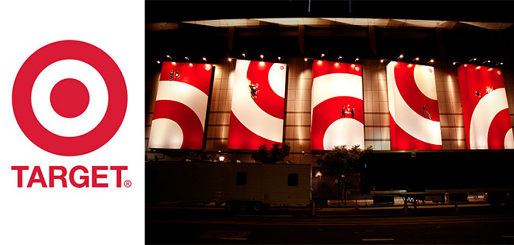 美国“塔吉特”超市的品牌标志图形是“标靶”,辅助图形截取和放大“标靶”的不同局部,形成更加鲜明醒目的品牌联想效果。