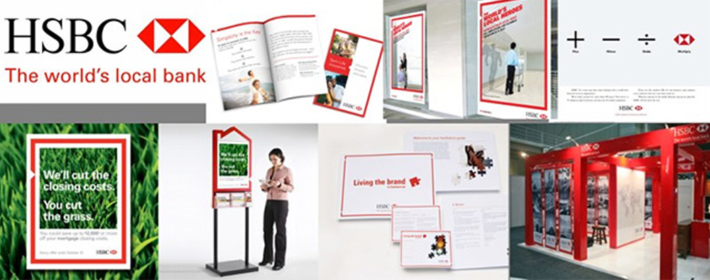 比如汇丰银行独特的带有一个“三角形”缺口的红色方框图形,其“三角形缺口”是品牌标志的一部分。 汇丰在2005年前使用的是旧的广告VI系统,几乎没有辅型,而仅靠标志作为形象特征。其缺点非常明显,就是形象记忆点太少,LOGO必须放得很大才能被认出是汇丰。 2005年后,汇丰采用了新的VI系统,加了一个显眼的红框,并以LOGO上的三角图案破了这个框,让它更有品牌特征。这个框框看似简单,其实并不容易表现。从视觉呈现看到背后强大的管理体系,是尊重市场、尊重用户、尊重设计的结果。看似简单的视觉语言,其背后依然是可贵的坚持与到位的执行。