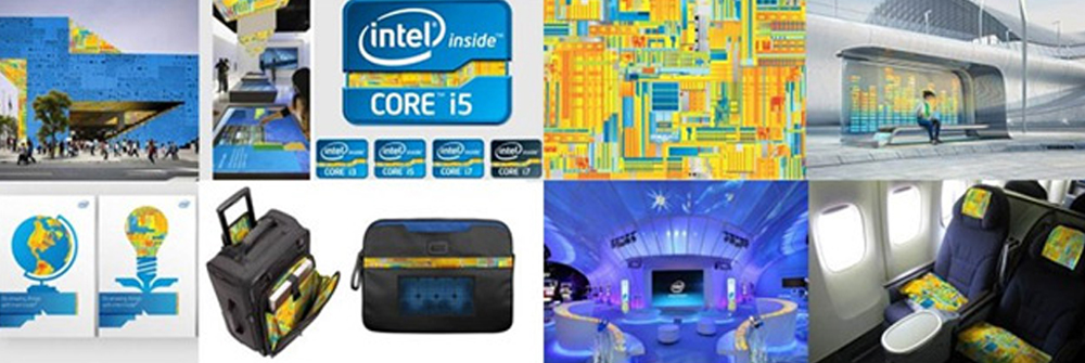 英特尔(intel)品牌设计了一个类似于“芯片”内部结构的辅助图案,并以金黄色作为主色调。该图案与品牌标准色“英特尔蓝”配合协同运用,相互映衬,出现在建筑物外部和内部空间、各种品牌广告、品牌制作物以及品牌ICON(图标)中,具有极其鲜明的独特识别性,为该品牌注入了无尽活力。这个辅助图案也作为芯片产品的一种“存在”象征,在放大品牌形象的同时,通过在各种品牌接触点的广告运用,也营造了无所不在、无所不能的品牌联想。