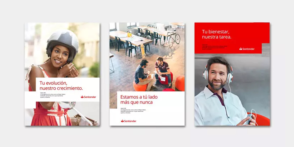 桑坦德银行从1986年开始首次采用“火焰”的图形LOGO,在1989年开始加入红色的主色调。而此次品牌更新将继续保留这个经典的图形设计和红色的配色方案。但为了能更好的适应数字平台,图形进行了小幅度的修改,同时,新形象将使用全新的无衬线体来来代替之前的衬线体。新LOGO更加现代简单,能够适应任何媒体和平台,同时开发出一系列元素来配合新LOGO,创造出更丰富和更多样化的视觉形象。据悉,负责此次品牌设计的是知名品牌设计机构Interbrand。