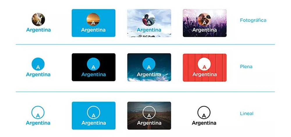 据Future Brand拉丁美洲地区负责人Gustavo Koniszczer解释说,全新的形象基于一个带有字母“A”的圆形,在默认情况下,整体将保持蓝色和白色的配色方案,同时圆形中可以有很多不同图案填充变化。其中蓝色的圆形代表我们生活的地球,而白色的字母“A”则表明了阿根廷的地理位置——世界的南端。这个全新的LOGO将成为强调这个国家和地方的独特性的符号。