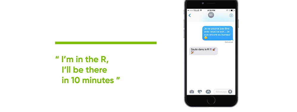 最后,还因为在法文中,字母R的发音和空气的发音一样,这使人联想到新干线上光线和空气质量,也关联到机场线的那段路线,与蒙特利尔地铁更好的分离开来。