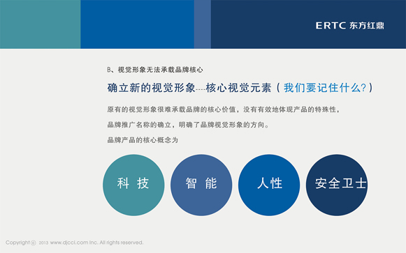 “金融网点安全卫士”全新的品牌识别名称,名字具有很好的联想性和很强的记忆点,易上口,将品牌的主动安全性进行了有效的强化,具有极强的震慑性,系统名称在“金融网点主动安全系统”前加“新一代”与品牌推广名称同时出现,对“新一代金融网点主动安全系统”进行了准确的解读,视觉形象无法承载品牌核心,确立新的视觉形象----核心视觉元素(我们要记住什么?),解决了原有的视觉形象很难承载品牌的核心价值,没有有效地体现产品的特殊性,品牌推广名称的确立,明确了品牌视觉形象的方向,品牌产品的核心概念为:科技,智能,人性,安全卫士