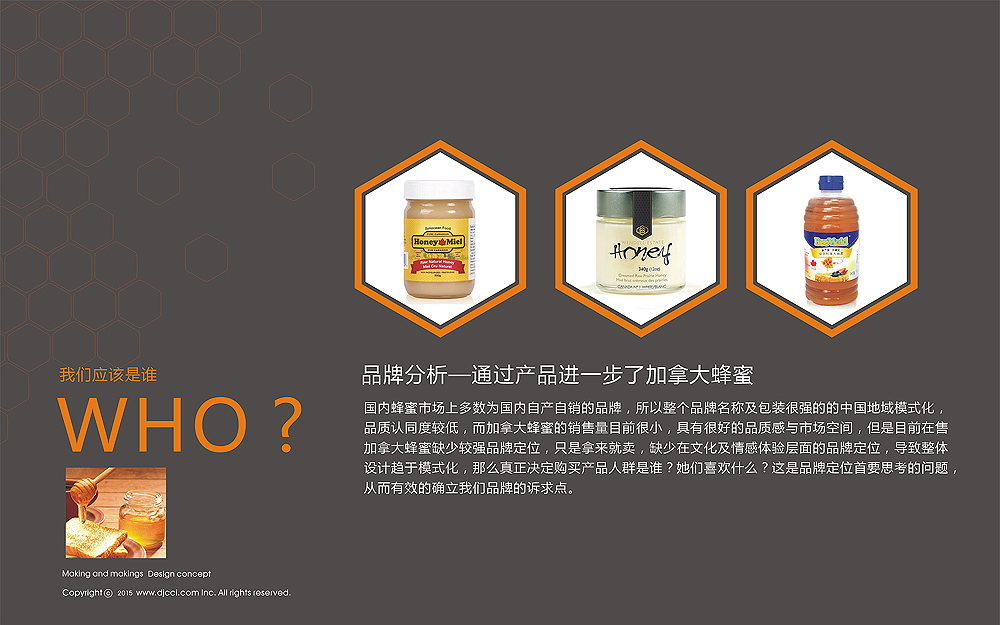 点精为加拿大具有100多年的蜂蜜庄园进行品牌全案策划设计,有效的探寻蜂蜜品牌的差异化,品牌设计不是简单的视觉呈现,是一个有效的品牌塑造的营销体系,精准的策略,创新的定位,有效的落地,提升品牌销售力,实现盈利倍增,利润倍增!