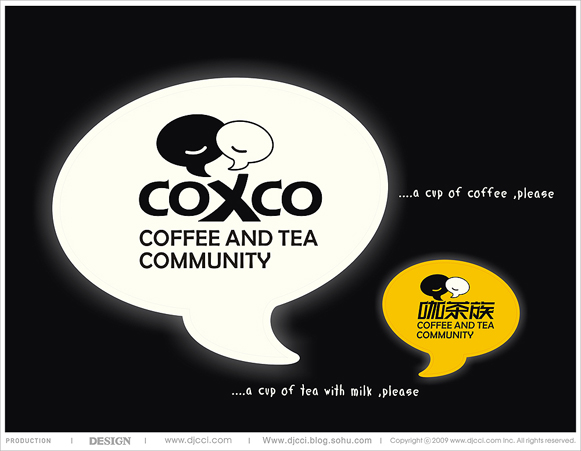 咖茶族是一家全国连锁的饮品专卖店,主要针对年轻时尚的消费人群。设计元素采用交流对话的概念,体现了茶与咖啡的对话,年轻人之间的对话,标志延伸咖茶族的品牌精神,以黑白为主色调,传达年轻人的酷爽一面的感受,图形也象征咖茶族热情的服务。标志呈现抽象的“对话”的造型,对话符号象征亲切,友好,寓意产品属性,以及企业从事甜蜜的事业。脸贴着脸代表甜丝丝的咖茶族带给人们好心情,心花怒放,心满意足。“幸福的交流”代表事业的发展、家庭的和谐、生活的惬意,令人们喜笑颜开。它也寓意浓浓的亲情、真挚的友情、甜蜜的爱情,使每个人如沐春风。正待开放的花蕾象征人们对未来的期待,象征等待我们的美好明天:崭新的一天,幸福的笑容将绽放出无尽的色彩。亲切的表情,代表企业兢兢业业,呵护消费者的健康与愉悦。